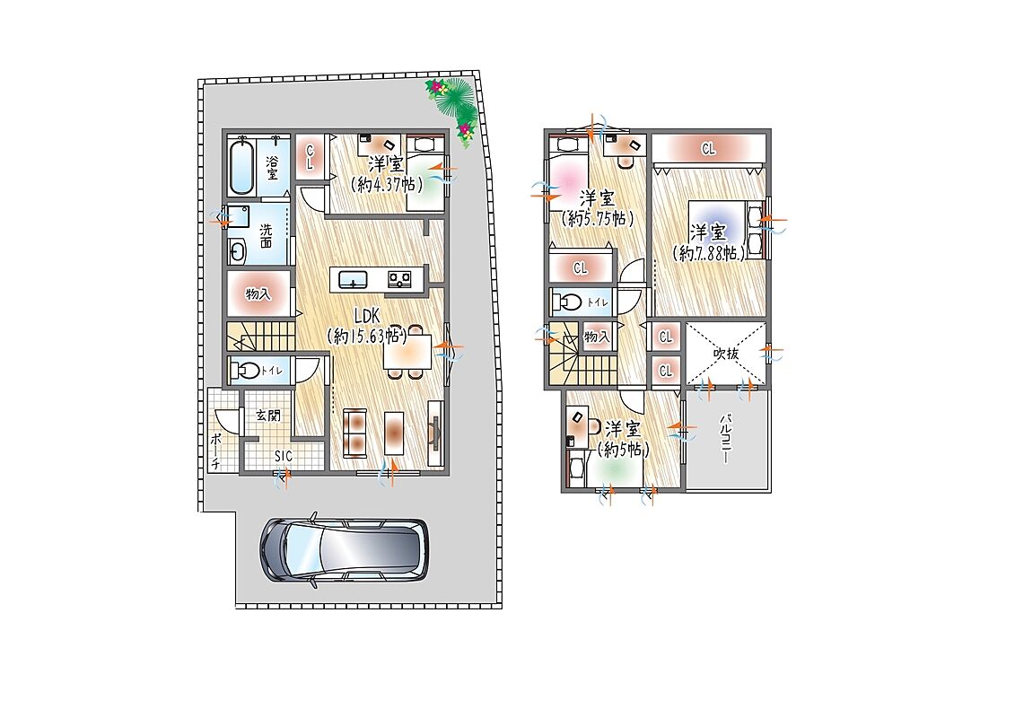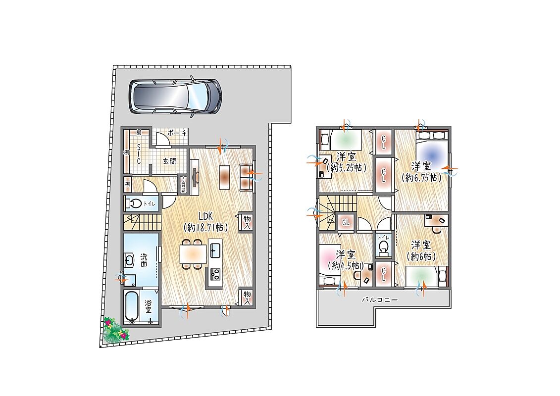 - ※完成予想図やCG合成画像は、門塀・植栽・庭・外観等、実際とは多少異なる場合があります。