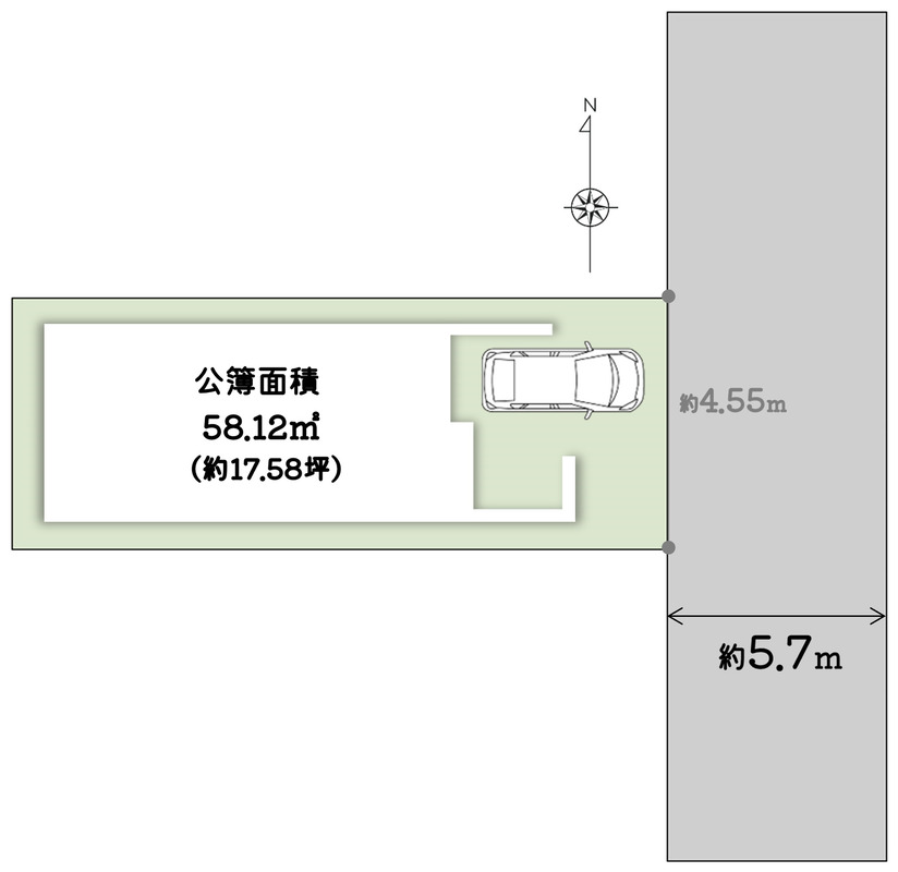 | 駐車場 | 0台 ~ 1台 | 道路の幅員 | 東側 約5.7m(幅員)/私道 |