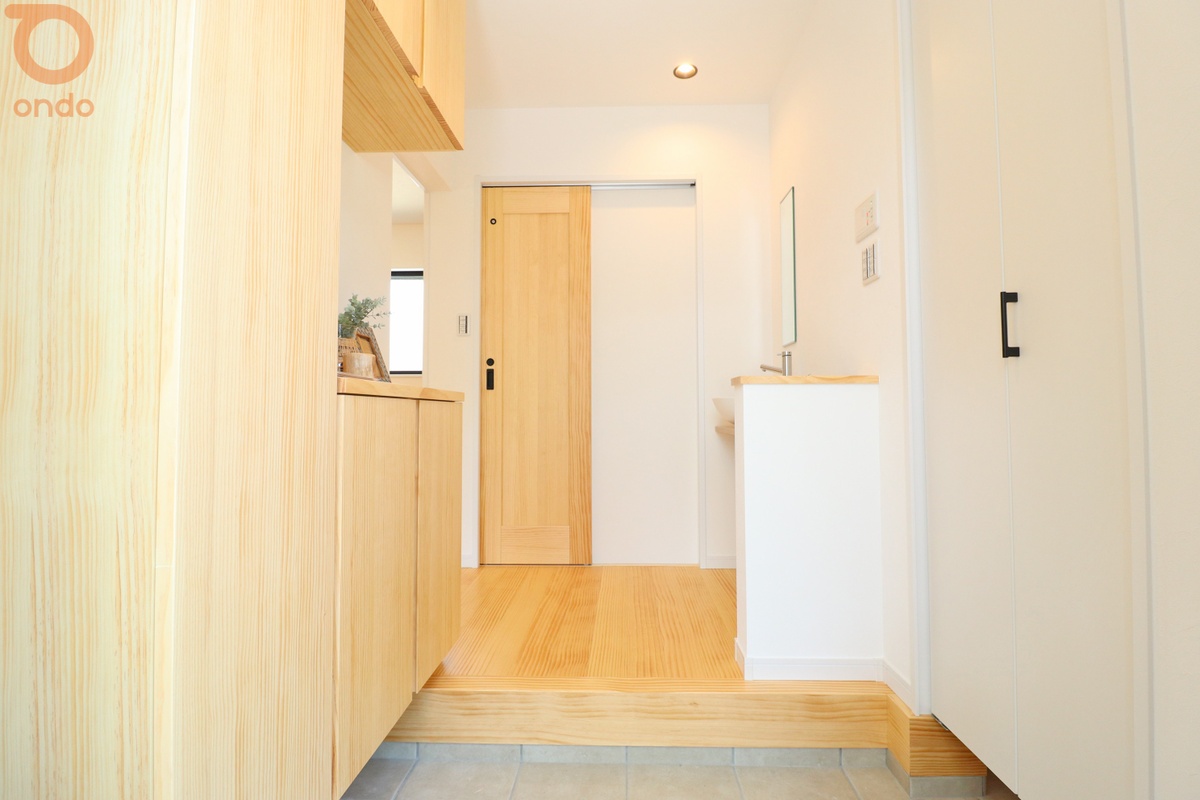 ■フロートタイプのシューズボックスが備わった玄関。玄関から室内が見えにくく、プライバシーに配慮した設計です。