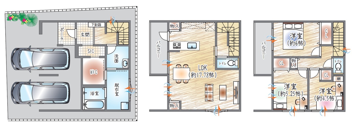 ■3階建て3LDK×駐車2台可能■ひろびろ8m間口で楽々駐車