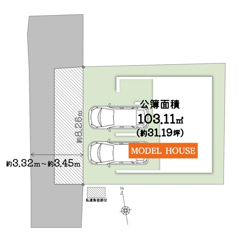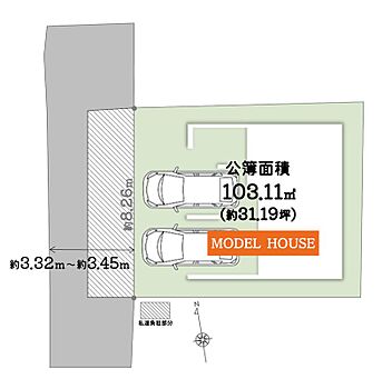 | 駐車場 | 0台 ~ 2台(駐車スペース2台) | 道路の幅員 | 【西側 約5.32~5.45m(幅員)/私道】【私道負担:約16.48m2(約4.98坪)】 |