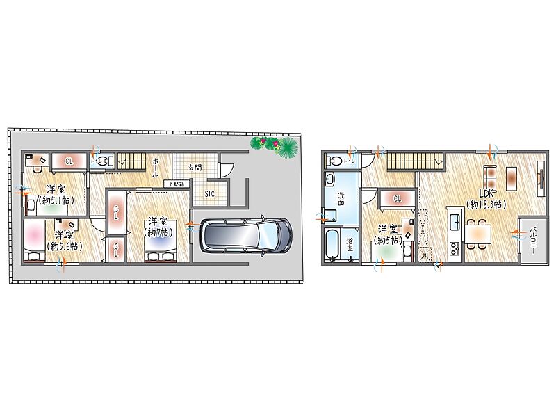 - ※完成予想図やCG合成画像は、門塀・植栽・庭・外観等、実際とは多少異なる場合があります。