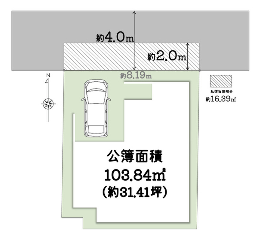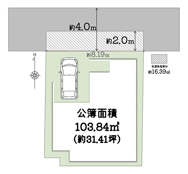 | 駐車場 | 0台 ~ 1台 | 道路の幅員 | 北側 約4.0m(幅員)/公道・私道(位置指定道路) |