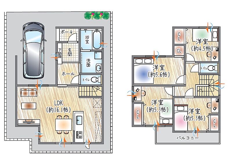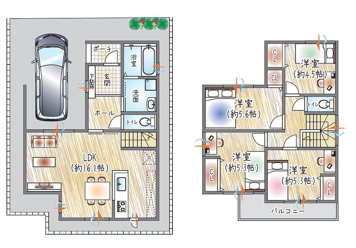 - ※完成予想図やCG合成画像は、門塀・植栽・庭・外観等、実際とは多少異なる場合があります。