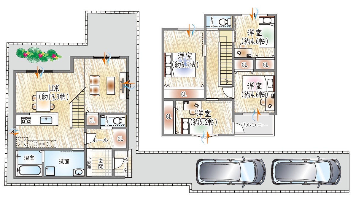 - ※完成予想図やCG合成画像は、門塀・植栽・庭・外観等、実際とは多少異なる場合があります。