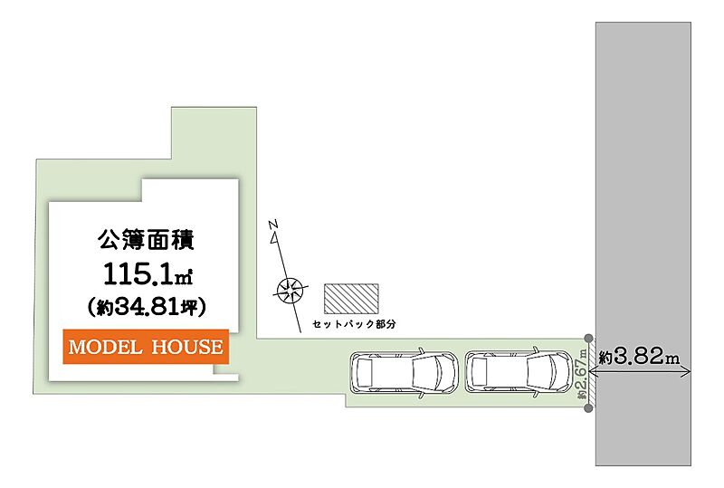 | 駐車場 | 0台 ~ 2台(駐車スペース2台有。) | 道路の幅員 | 【東 約3.82m(幅員)/公道・私道】【セットバック:約0.52m2(約0.15坪)】 |