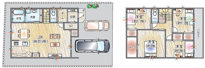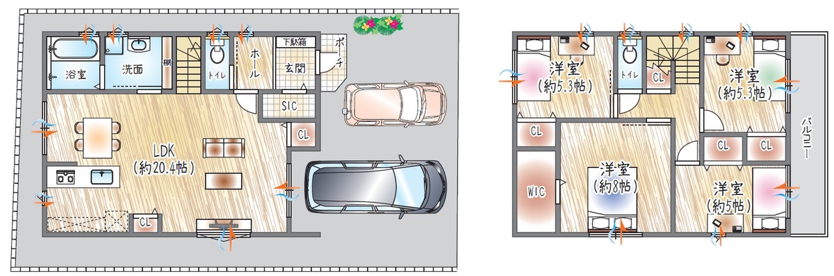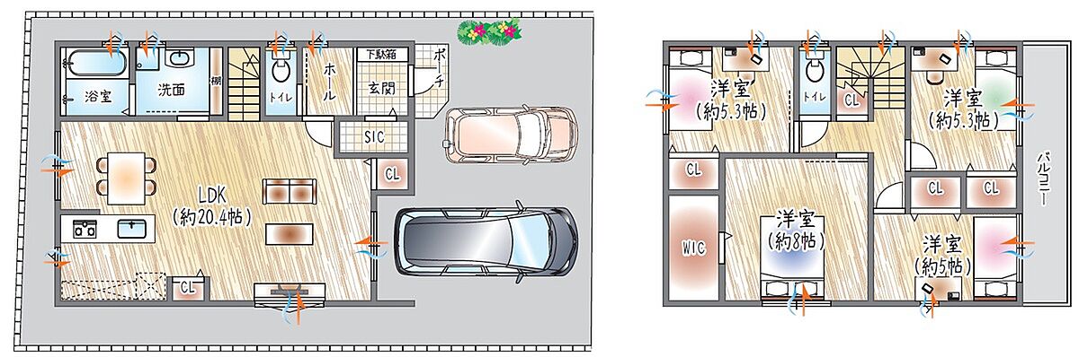 ■2階建て×4LDKのプラン。LDKは開放的な20帖超!