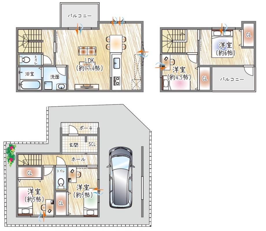 - ※完成予想図やCG合成画像は、門塀・植栽・庭・外観等、実際とは多少異なる場合があります。