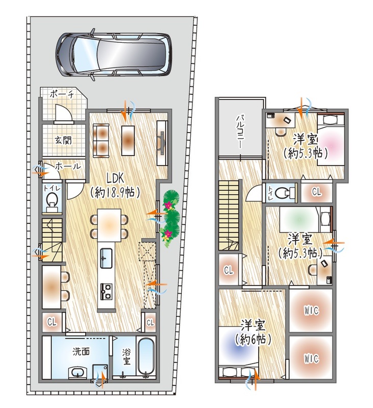 ・大容量WIC ・各居室収納付きでスッキリ整うお家