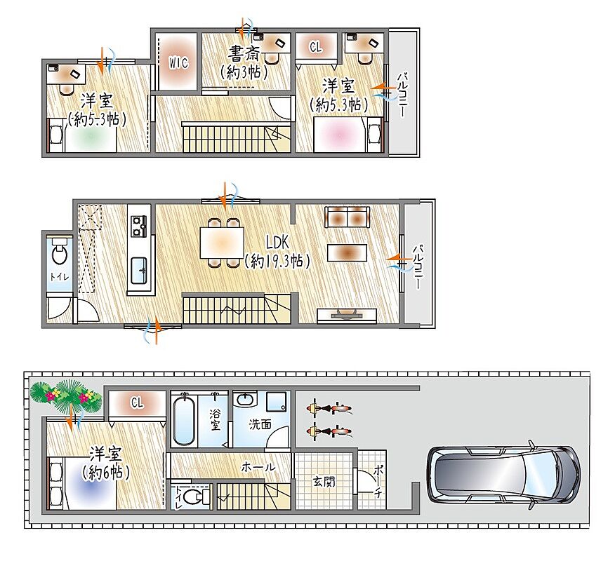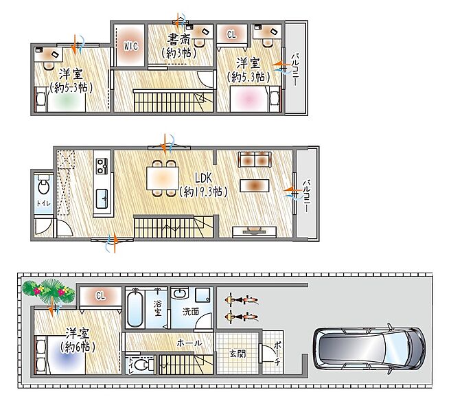 - ※完成予想図やCG合成画像は、門塀・植栽・庭・外観等、実際とは多少異なる場合があります。