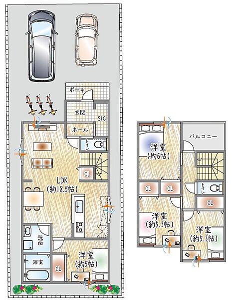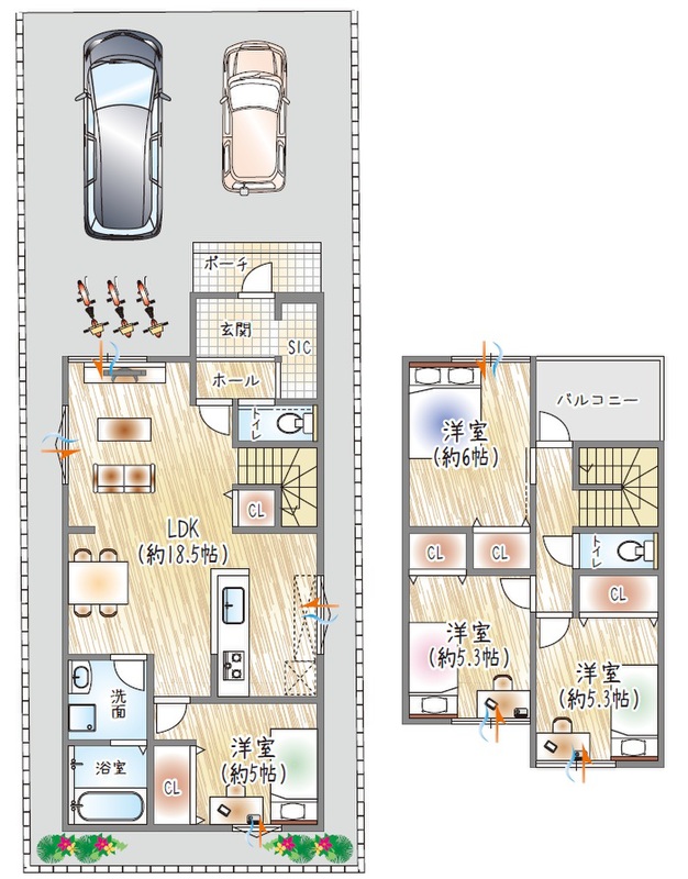 - ※完成予想図やCG合成画像は、門塀・植栽・庭・外観等、実際とは多少異なる場合があります。