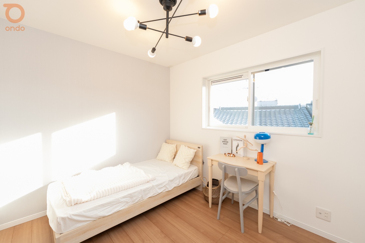 ■窓からやさしい光が差し込む明るい居室。ベッドやデスクを置いてもゆとりがあり、子ども部屋や書斎としても使いやすい空間です。シンプルな内装で家具のレイアウトもしやすいお部屋です。