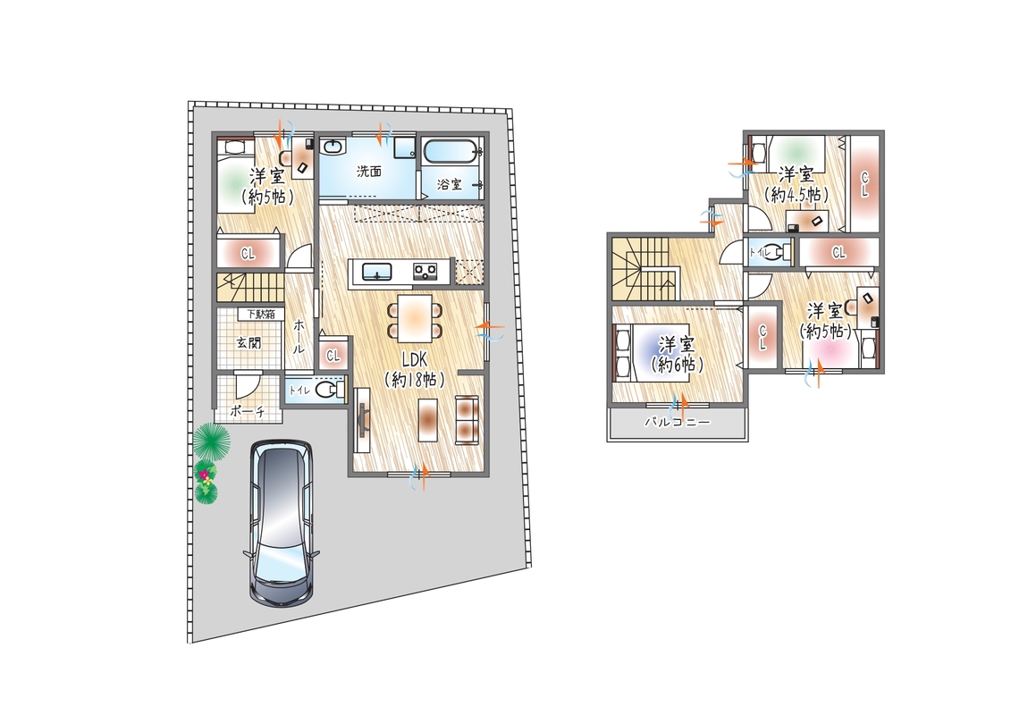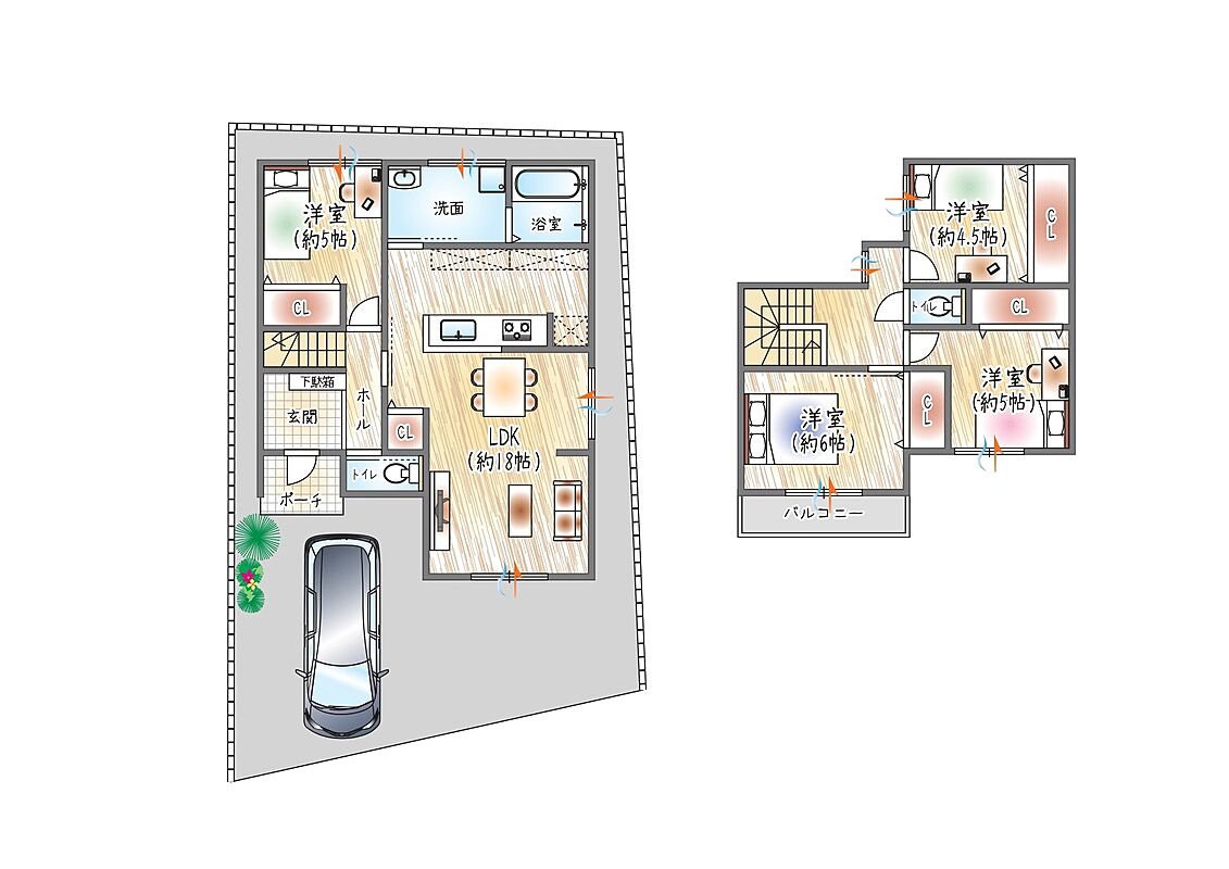 - ※完成予想図やCG合成画像は、門塀・植栽・庭・外観等、実際とは多少異なる場合があります。