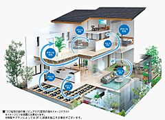 また、温度・湿度をコントロールして、一年を通して快適な空気環境を実現し、光熱費も節約する「全熱交換システム」を採用しています。