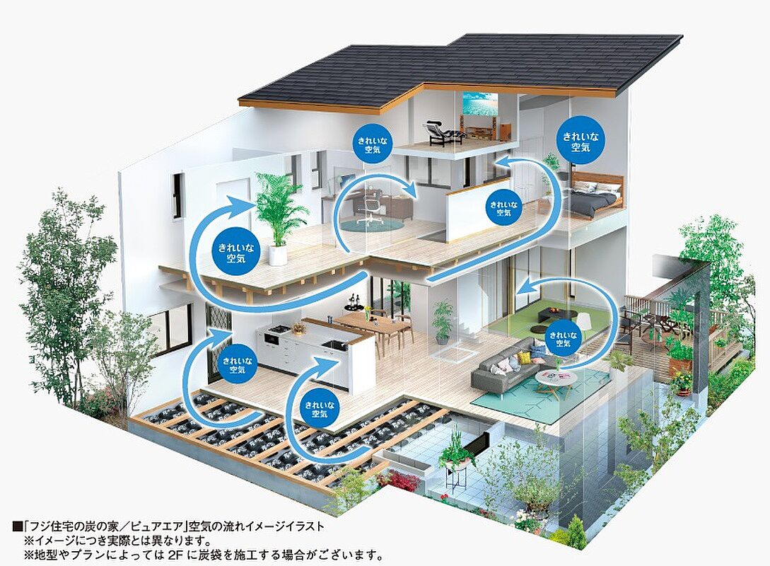 「フジ住宅の炭の家/ピュアエア」では、屋...