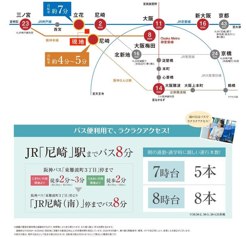 阪神本線「尼崎」駅 徒歩15分~17分 JR東海道・山陽本線「立花」駅 徒歩24分~26分 |