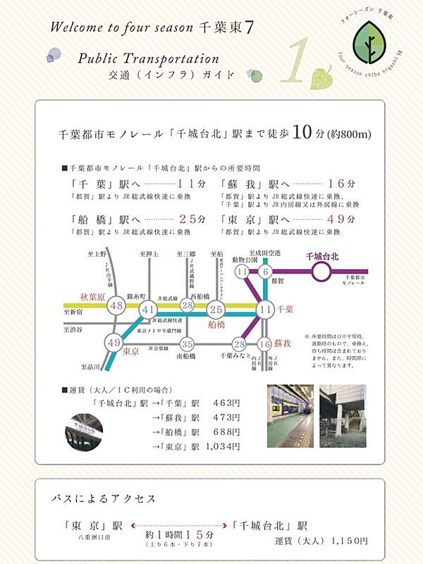 - 千葉都市モノレール「千城台北」駅 徒歩10分千葉都市モノレール「千城台」駅 徒歩13分JR総武線「千葉」駅 バス28分 「北一丁目」バス停 徒歩10分