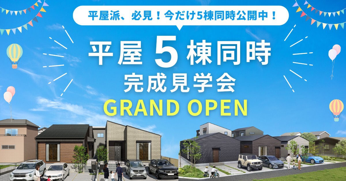 平屋5棟同時完成見学会 土地面積 165.35~172.59m2 価格 598万円 -