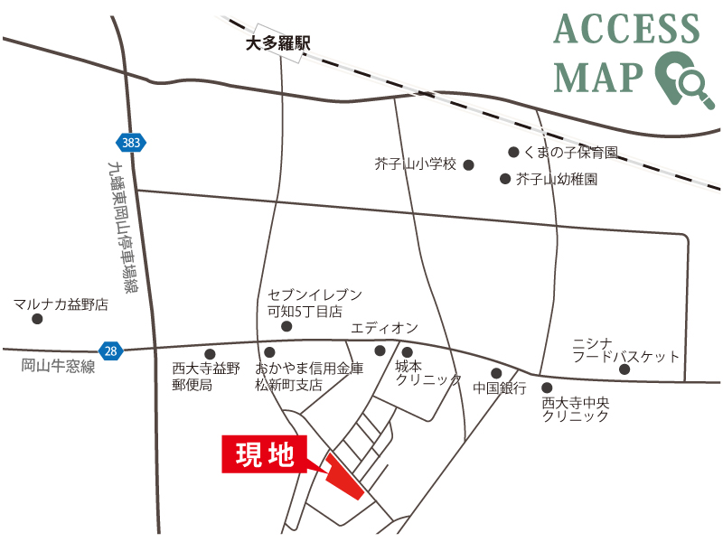 JR赤穂線「大多羅」駅 徒歩16分~17分 「」駅 両備バス「益野」バス停 徒歩7分~8分 |