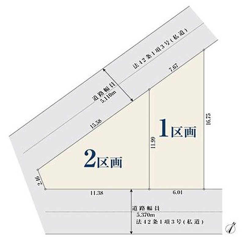 | 駐車場 | 1台 | 道路の幅員 | 西側現況約5.22m私道、南東側現況約5.4m私道 |