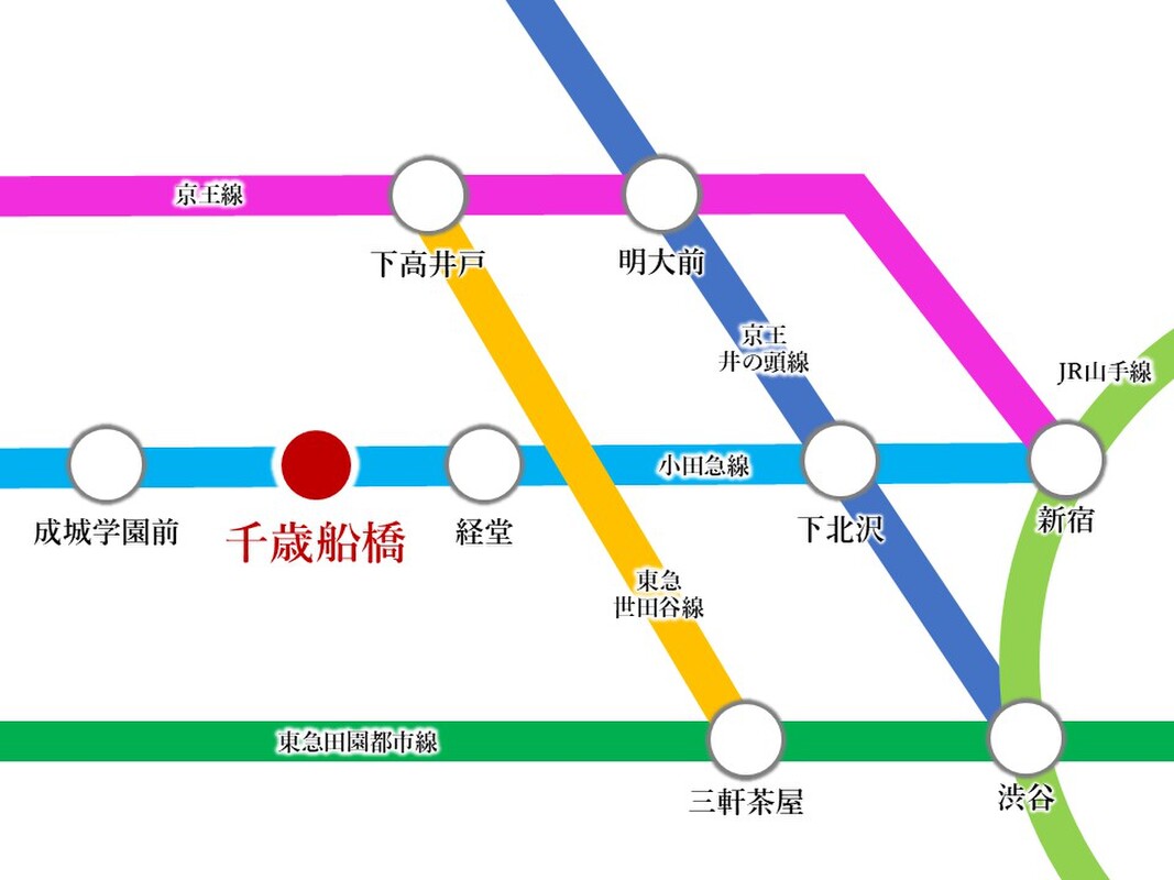 - 小田急小田原線「千歳船橋」駅 徒歩7分小田急小田原線「祖師ヶ谷大蔵」駅 徒歩19分小田急小田原線「経堂」駅 徒歩23分