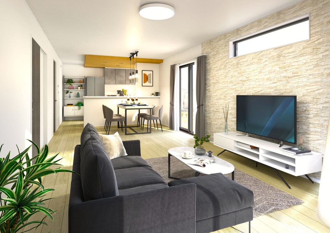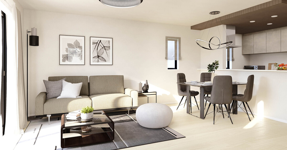 ◆ リビングや居室などにアクセントクロスを採用することが可能。デザイン性だけでなく空間の広がりも演出してくれます。