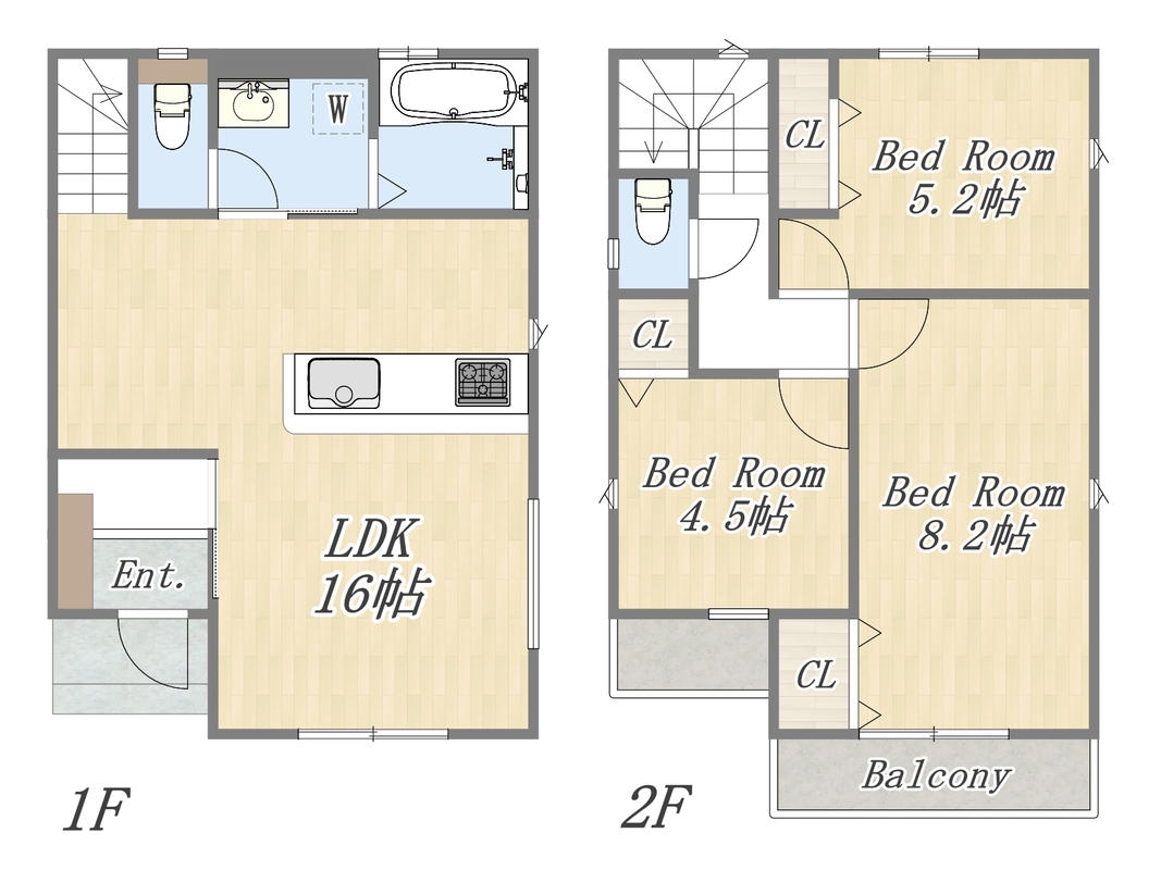 【充実設備】参考プランではLDK16帖超の3LDKプラン。家事動線の良い水回りが集約した間取りとなっています。リビングや居室にはアクセントクロスを採用することが可能。お客様好みの空間で過ごせます。