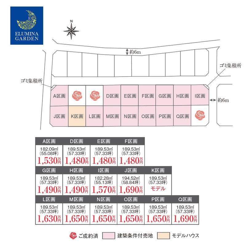 | 販売価格 | 1,480万円~1,690万円 | 最多価格帯 | 1600万円台(7区画) |