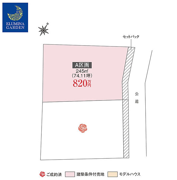 | 駐車場 | - | 道路の幅員 | 北東側 約1.25m(セットバック:15.5m2(4.68坪) ※土地面積245m2に含む ) |