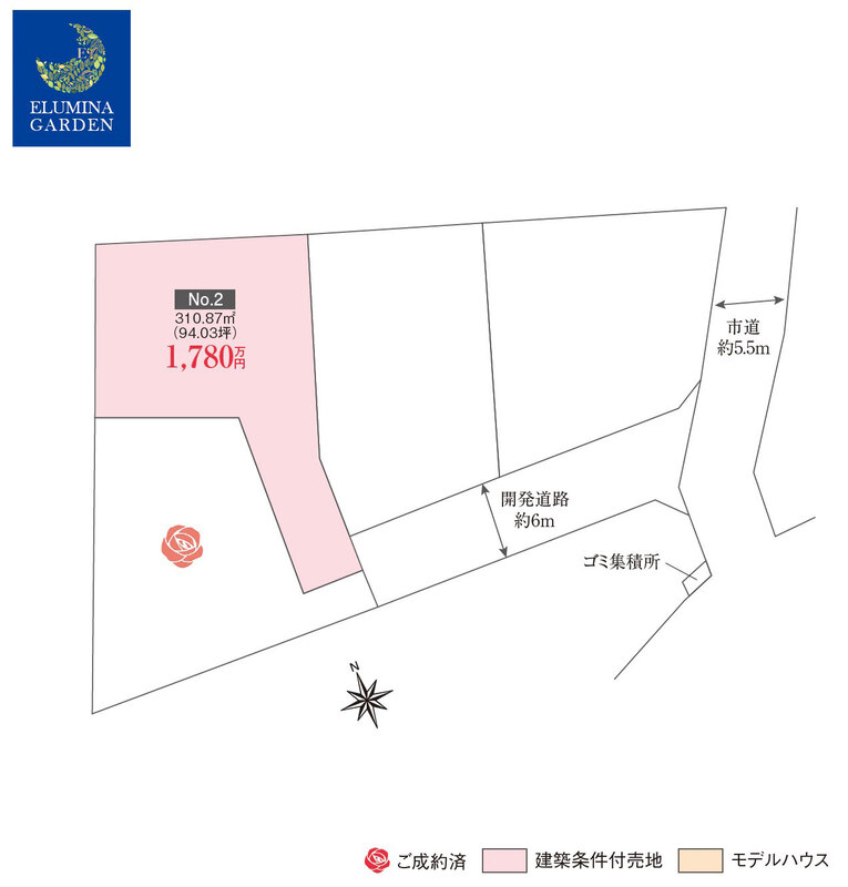 | 駐車場 | - | 道路の幅員 | 北東:市道約5.5m、開発道路6m |