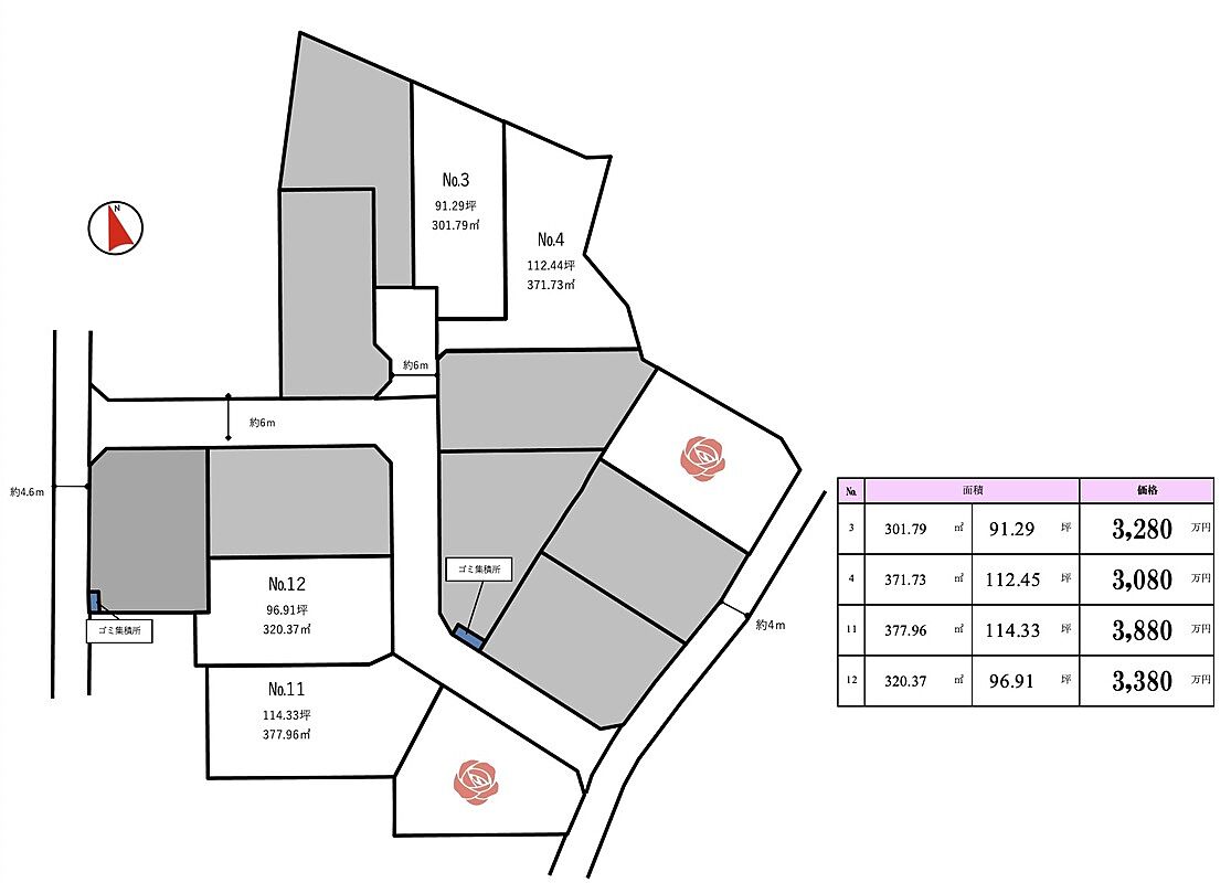 | 駐車場 | - | 道路の幅員 | 北側6m、西側4.6m |