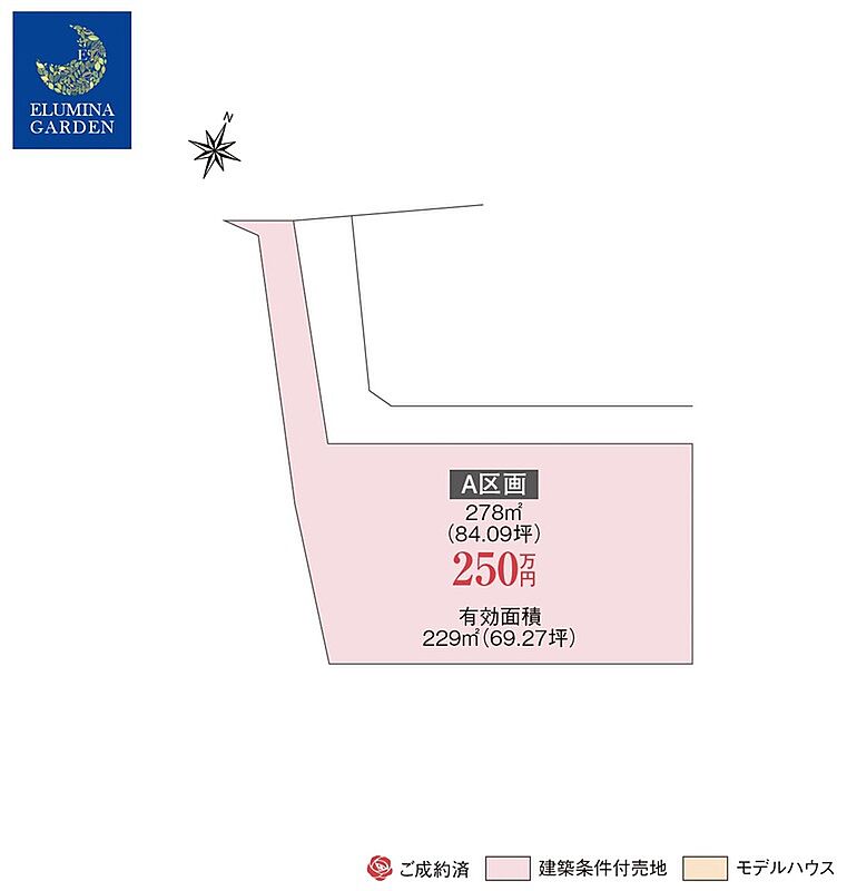 | 建物面積 | - | 土地面積 | 278m2(84.09坪) ※有効面積:229m2(69.27坪) |