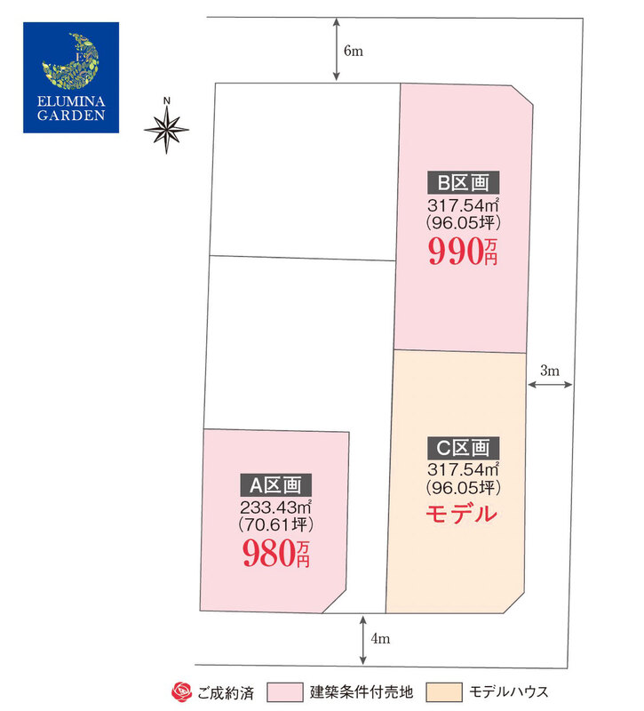 | 建物面積 | - | 土地面積 | 233.43m2(70.61坪)~317.54m2(96.05坪) |