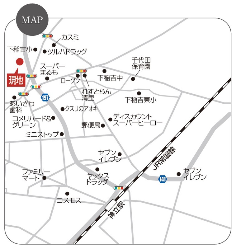 - ※地図、航空写真情報および地形ならびに周辺のお店・施設は、必ずしも現況を表すものではありません。