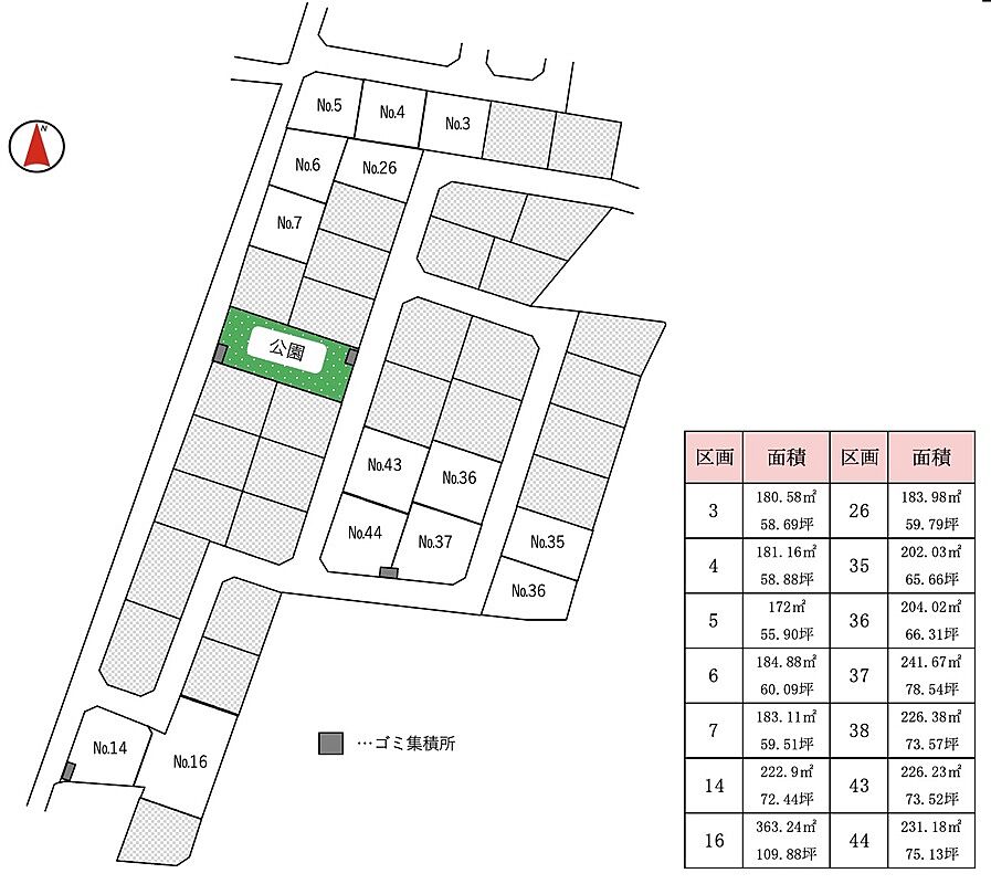 | 建物面積 | - | 土地面積 | 172m2(55.90坪)~363.24m2(109.88坪) |