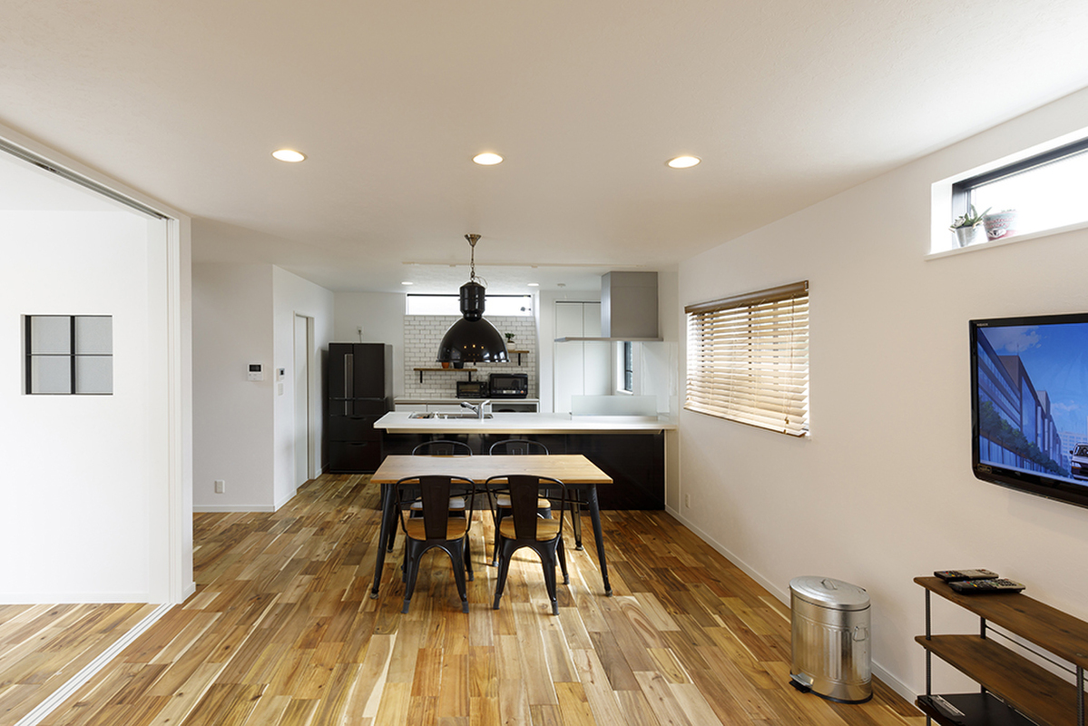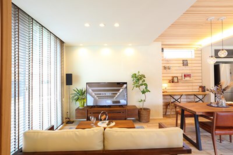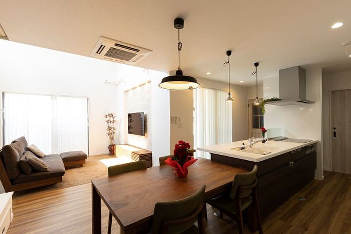 キッチン→ダイニング→リビングとL字型でアクセスしやすい設計に...
