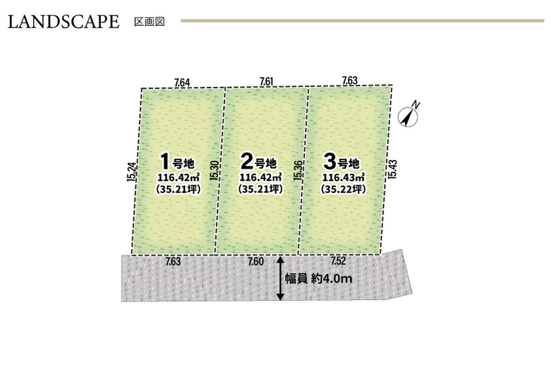 | 建物面積 | - | 土地面積 | 116.42m2(1,2号地)~116.43m2(3号地) |