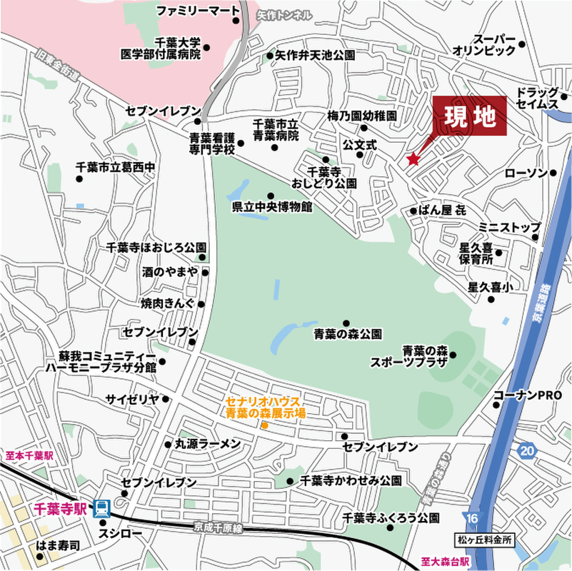 JR総武線「千葉」駅 バス18分 南矢作バス停 徒歩2分 JR京葉線「蘇我」駅 バス13分 星久喜坂下バス停 徒歩9分 京成千原線「千葉寺」駅 徒歩24分 |
