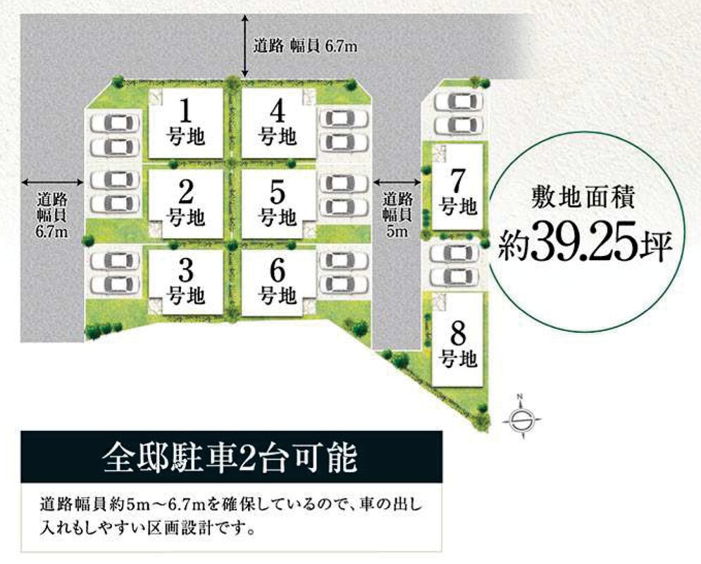 区画内道路につき、防犯性の高い街区設計です。