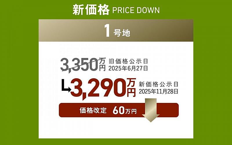 | 販売価格 | 3290~3390万円 | 最多価格帯 | 3390万円(1区画)、3290万円(1区画) |