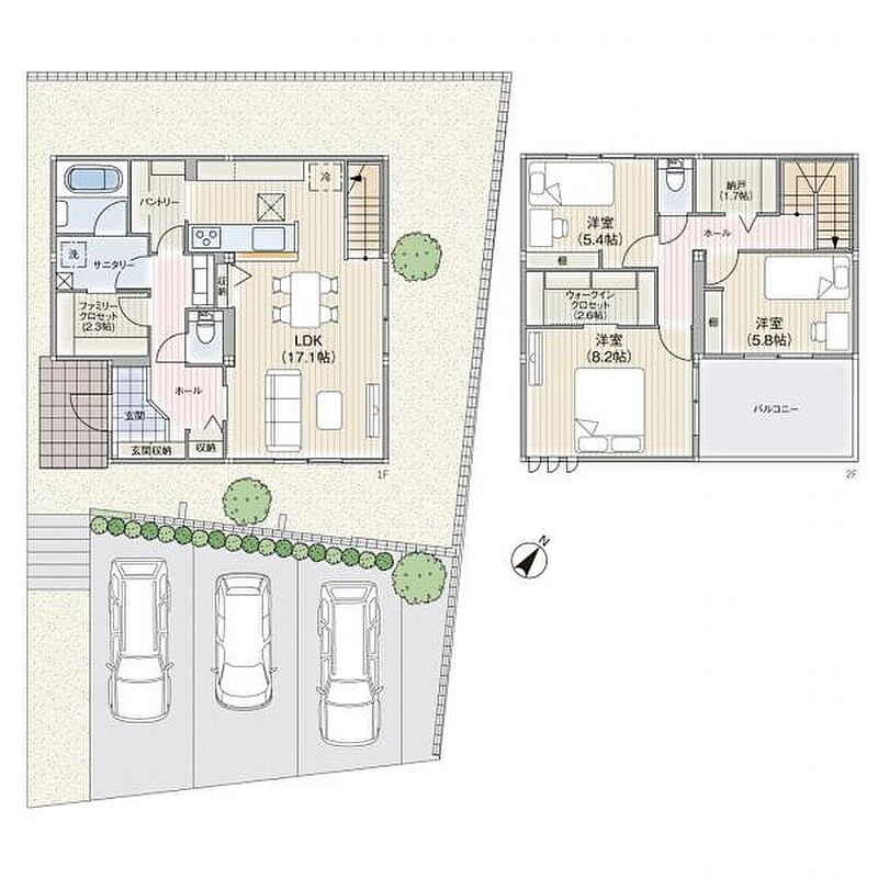 - ※完成予想図やCG合成画像は、門塀・植栽・庭・外観等、実際とは多少異なる場合があります。