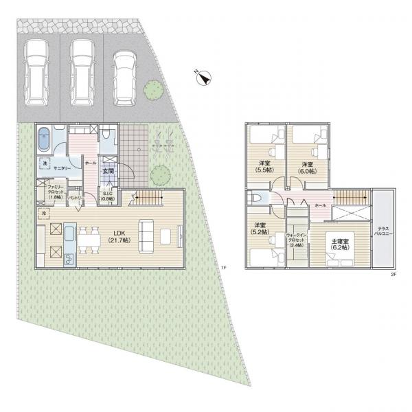 - ※完成予想図やCG合成画像は、門塀・植栽・庭・外観等、実際とは多少異なる場合があります。