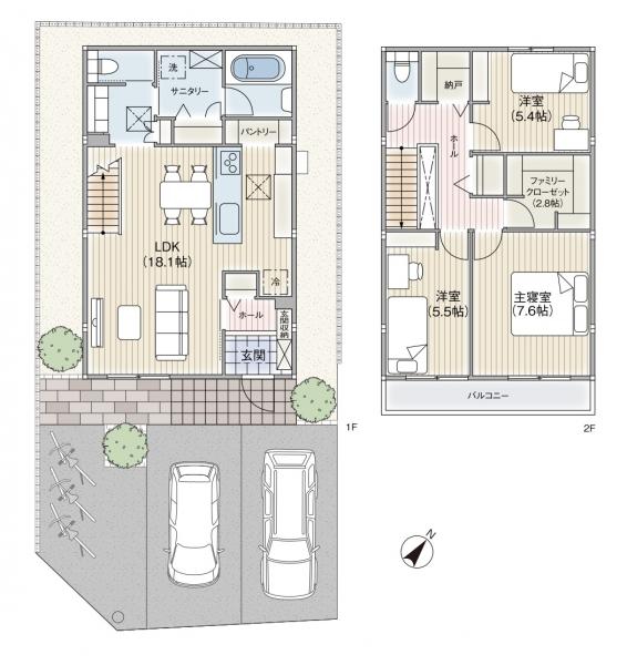 - ※完成予想図やCG合成画像は、門塀・植栽・庭・外観等、実際とは多少異なる場合があります。