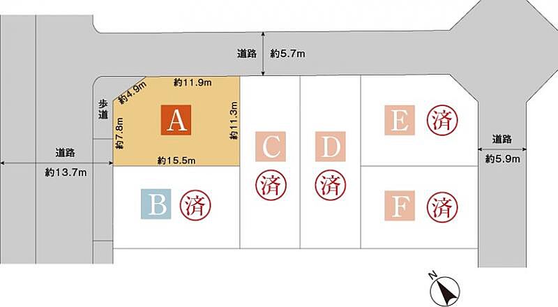 | 駐車場 | 0台 | 道路の幅員 | 5.70m ~ 13.70m |