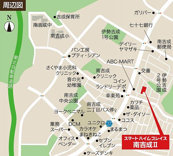 「」駅 仙台市営バス「南吉成2丁目」バス停 徒歩4分~5分 |