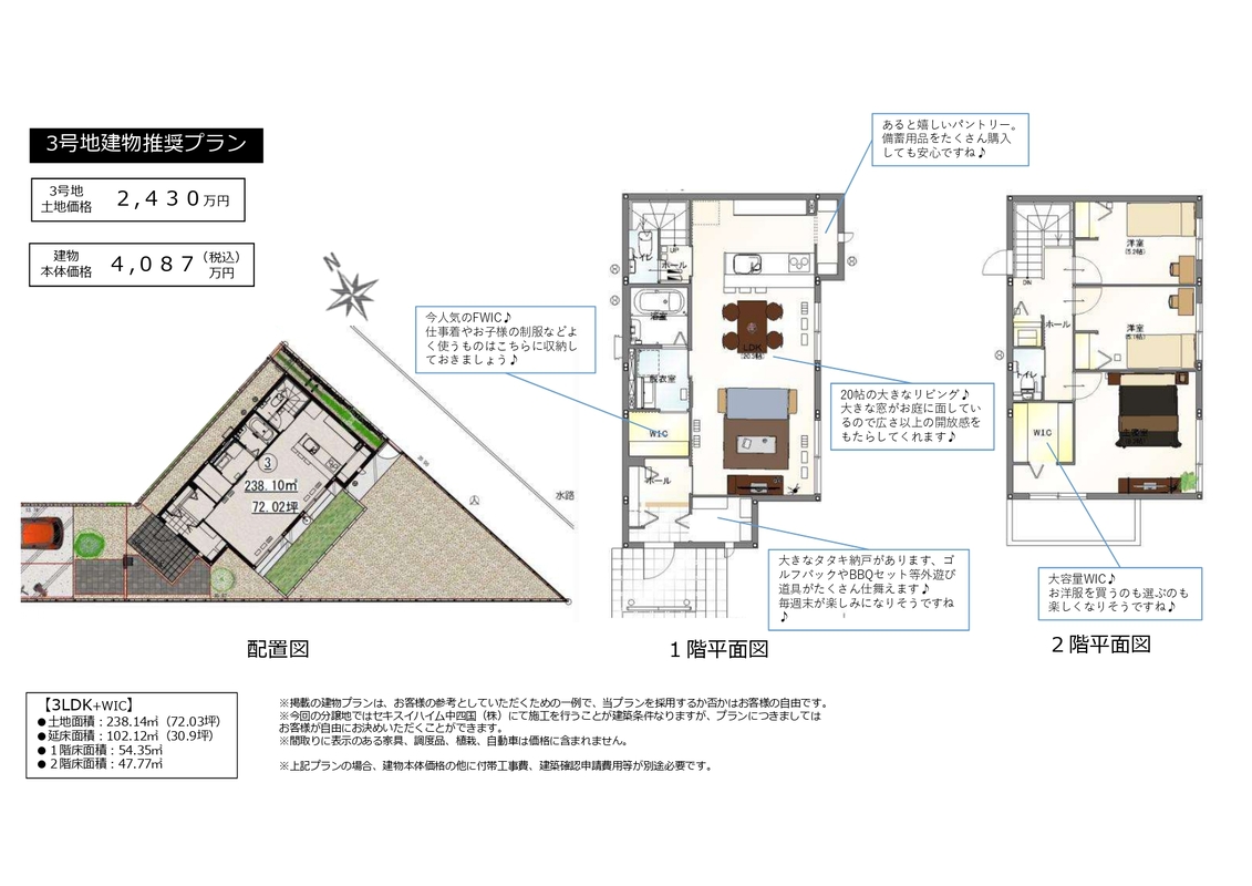 | 建物面積 | - | 土地面積 | 192.54m2(58.24坪)~238.14m2(72.03坪) |