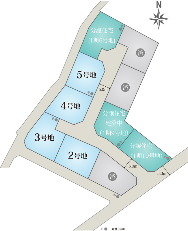 | 建物面積 | - | 土地面積 | 207.53m2(2号地)、209.73m2(3号地)、198.08m2(4号地)、194.47m2(5号地) |