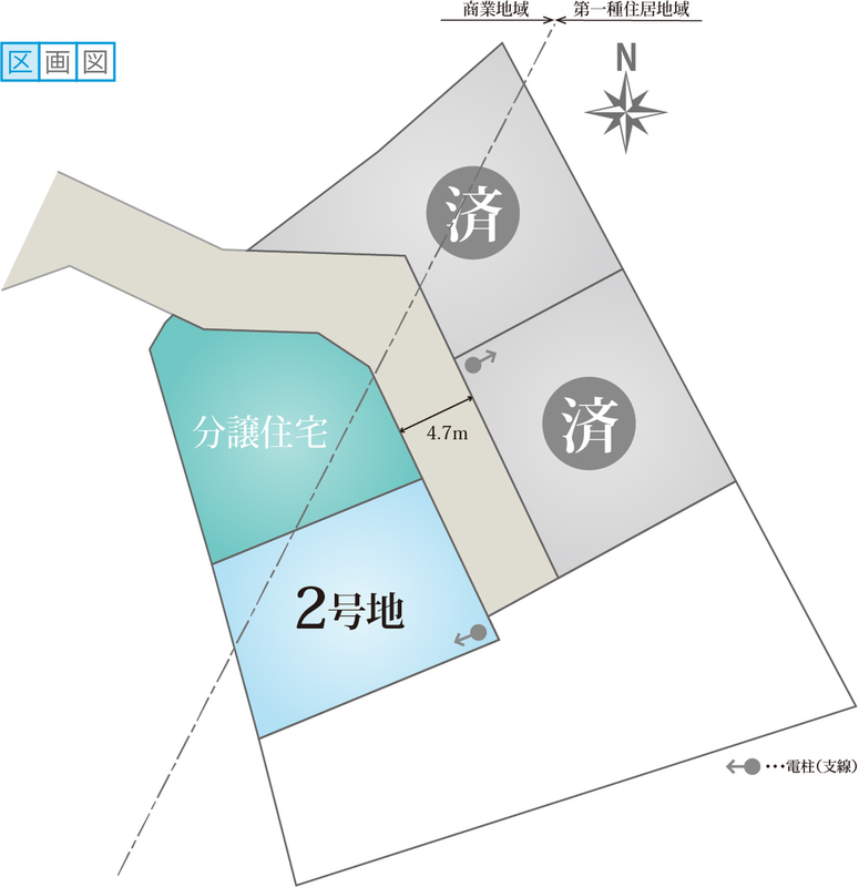 | 用途地域 | 第一種住居地域、商業地域(2号地の一部) | 都市計画 | 市街化区域 |