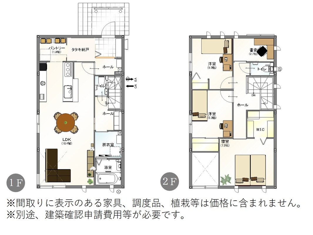 - ※完成予想図やCG合成画像は、門塀・植栽・庭・外観等、実際とは多少異なる場合があります。