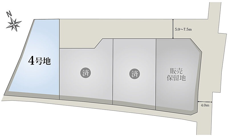 | 駐車場 | - | 道路の幅員 | 分譲地内5m~7.5m(私道)、東側道路4m(公道) |